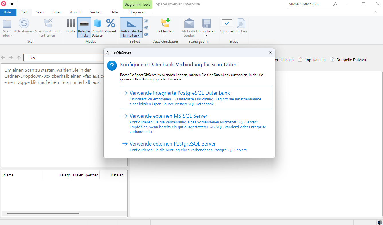SpaceObServer stores all scan results in a SQL database. For larger environments, we have always recommended a dedicated Microsoft SQL Server. But not every customer wants to set up a SQL Server just for an initial evaluation or a smaller installation. That is exactly what the embedded database was designed for: a database that installs alongside SpaceObServer and works immediately without any additional configuration.