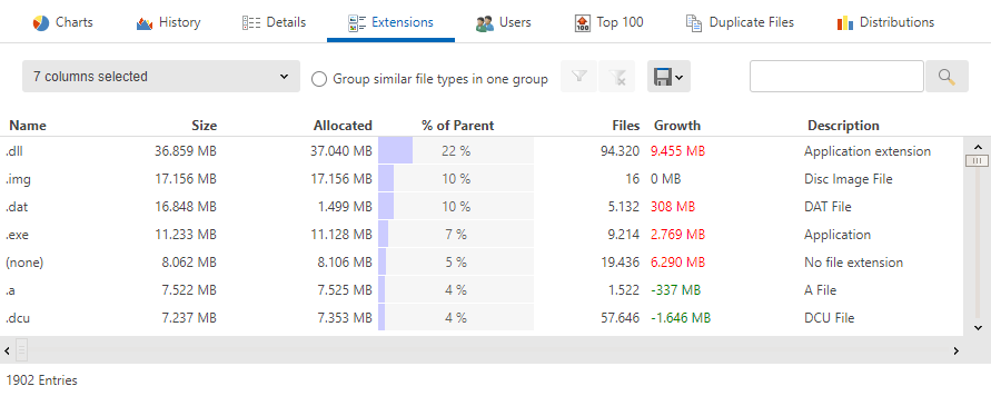 An alternative graphical presentation to quickly get good insights of the disk usage is the bar chart.