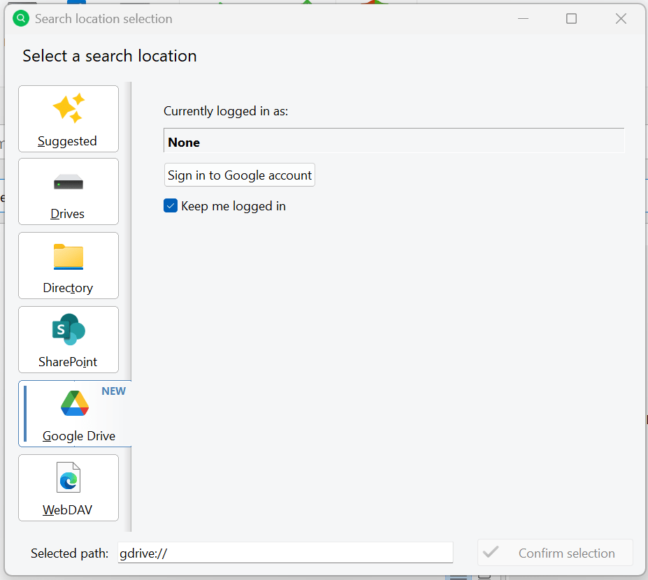 What makes UltraSearch so special? In addition to Google Drive, you can define other search paths such as local drives or folders, network drives, or SharePoint paths.